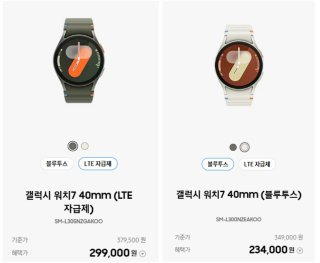 - **워치7**은 크기와 LTE 지원 여부에 따라 30~40만원대,
